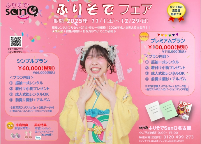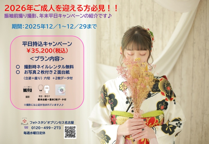 お選び頂いた振袖はスタジオですぐに撮影もできるのでとっても便利。是非ご利用ください。