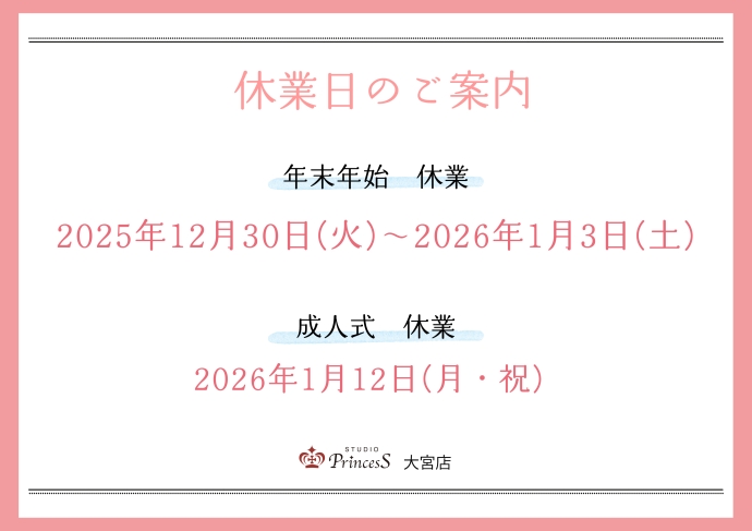 〇年末・年始休業日のお知らせ〇